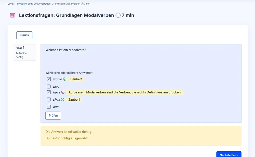 - Es wird laufend geprüft, ob du auch alles richtig verstanden hast.
