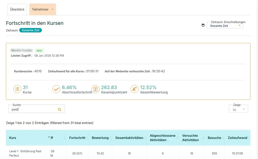 - Die Aktivitäten werden bewertet, sodass du dir jederzeit ein (Gesamt-)Bild deiner Fähigkeiten machen kannst.